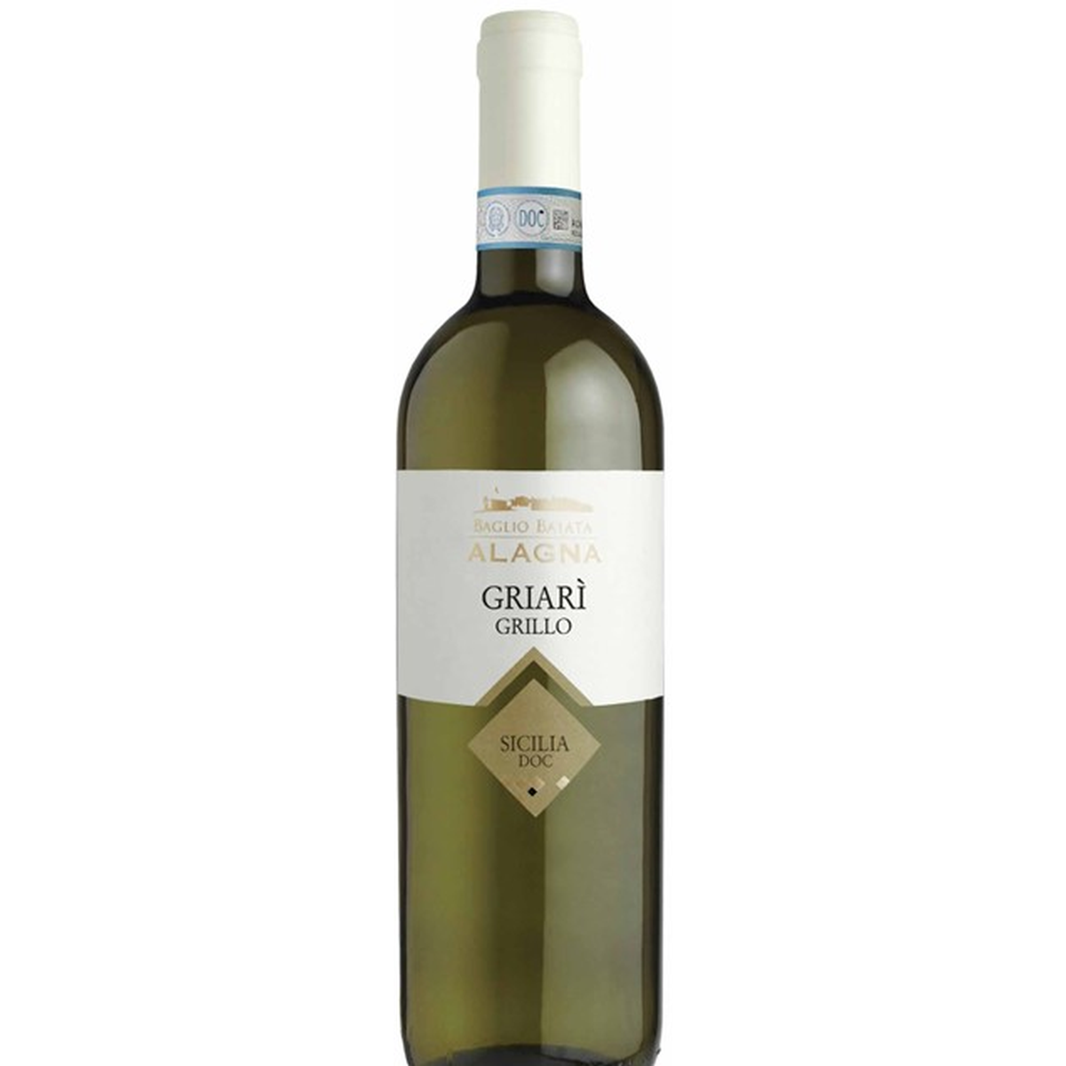 Alagna Grillo Griari is a crisp and elegant Sicilian white wine made solely from Grillo grapes. It showcases a light, bright straw-yellow colour with a fresh, well-structured palate featuring fruit and citrus aromas alongside delicate floral notes of wildflowers and orange blossom. The finish is pleasantly savoury with a mineral touch, reflecting its coastal origins.